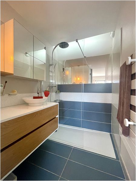 et douche, d’un WC suspendu indépendant, chauffage individuel électrique, double-vitrage et volets roulants.