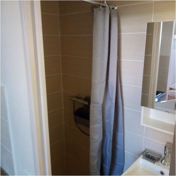 18 M² environ est composé d’une pièce principale avec nombreux rangements, kitchenette équipée d’une plaque gaz, d’un réfrigérateur,