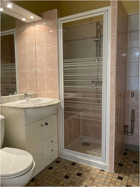 d’un meuble-vasque, d’une douche, d’un WC et d’un branchement lave-linge. Le chauffage est collectif.
