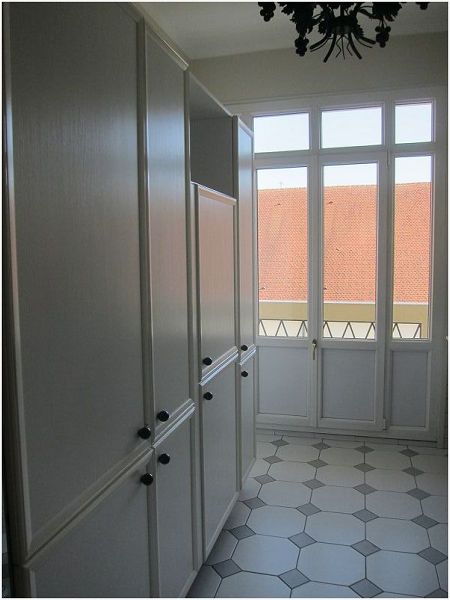 hotte, plaque induction, four, réfrigérateur-congélateur, branchement lave-vaisselle et lave-linge) donnant sur un petit balcon,