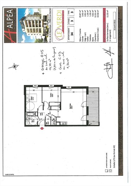Dans la copropriété LE VERDI, appartement de type T3 d’une surface de 67 M² avec balcon-terrasse de 11 m² environ,