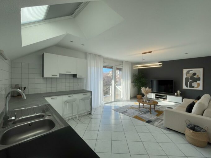 Sur le bas d’Annecy-le-vieux, situé dans une copropriété de 2011, appartement Type 3 de 68m2 situé au 1er étage bénéficiant d’une jolie terrasse plein sud.