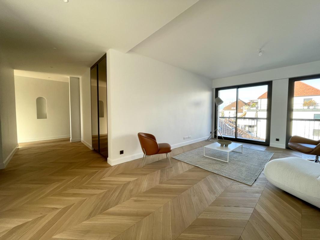 Quartier Galeries Lafayette, dans un immeuble cossu datant de 1975, en 4ème étage avec ascenseur, lumineux et spacieux appartement de 125m² de Type 4 bénéficiant d’une rénovation de très belle qualité. Double exposition.
